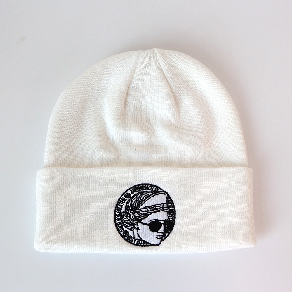 nicely warm knitted beanie with 2 logos.